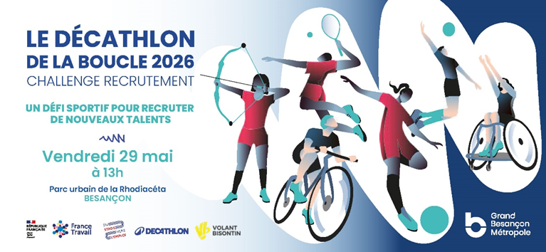Le Décathlon de la Boucle est un événement proposé par Grand Besançon Métropole en partenariat avec Décathlon, France Travail et les associations sportives bisontines.