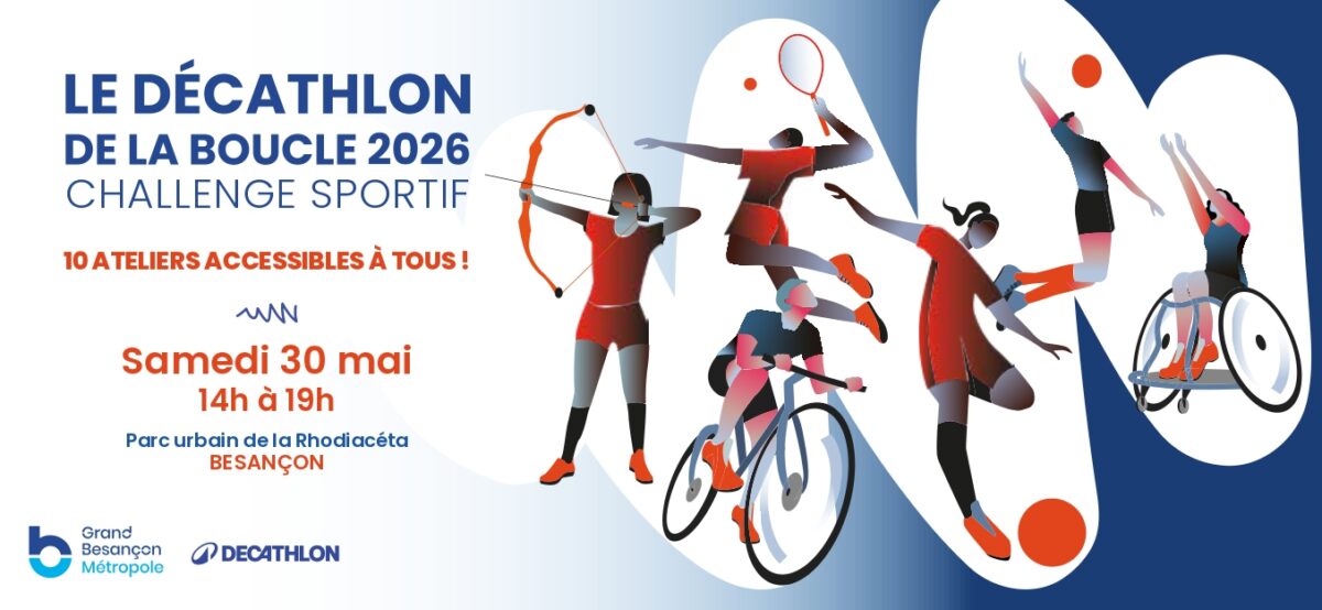 Le Décathlon de la Boucle est un événement proposé par Grand Besançon Métropole en partenariat avec Décathlon, France Travail et les associations sportives bisontines.